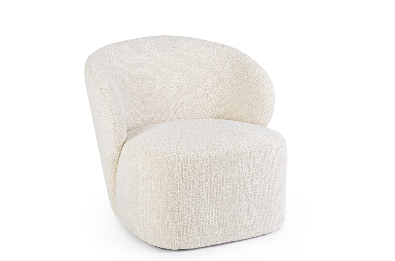 Poltrona in alluminio verniciato a polvere epossidica colore bianco con cuscineria color beige scuro. Fanno parte della stessa linea anche il tavolino e il divanetto due posti.